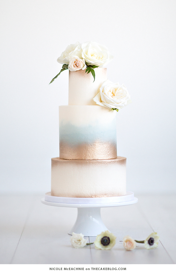 Hints of gold and blue softly fade into a creamy white in this ethereal design by Nicole McEachnie. Elegant in it’s simplicity, we’re absolutely in love with this timeless beauty. (Photography by Maru Photography)