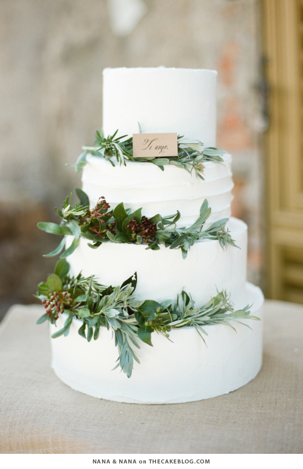 Rustic buttercream is paired with mixed greenery and pops of berries to create this organic and naturally beautiful cake by Nana & Nana. (Photography by Rebecca Arthurs )